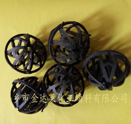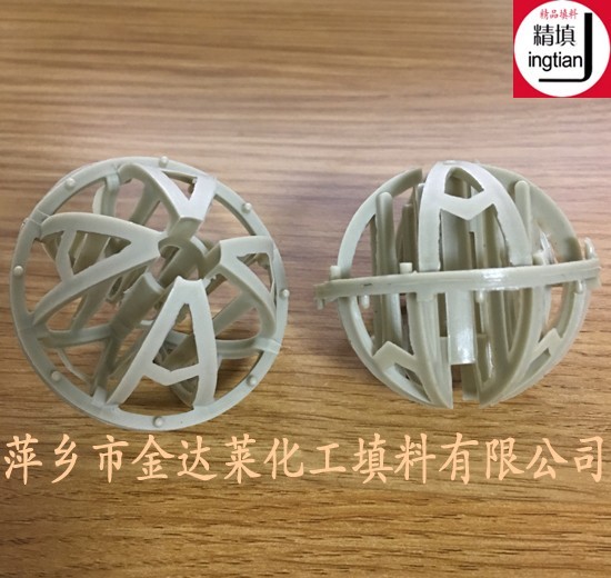 哈凯登填料(Hackectten)填料又名Tti-Pac,也称塑料环保球,双星球填料。国内多用于空气净化装置里面,所以又俗称过滤球或者环保过滤球, 主要由塑料材料制成。它是1978年由德国的R.A.Jaeger(现在的美国Jaeger Products Inc)研发的产品。哈凯登填料是由许多枝条的隔栅组成空心的球球形填料,这个结构有利于填料表面的润湿与液膜的更新,由于隔栅在塔内堆积的孔隙均匀,有利于气液的分布和减小气流通过床体的阻力,特别适合气体吸收、尾气净化等装置,并可在低的液体负荷下操作。