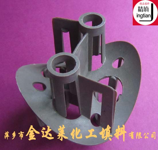 增强聚丙烯海尔环填料外形结构以鞍形为主体,锥体开孔圆筒,增大了比表面积和孔隙率,改善了气液在填料层的分布。产品具有低压降、填料层气液分布均匀,抗污性强。不仅具有通量大、压降低,耐腐蚀及抗撞击性能好等优点以外,填料间不会嵌套,壁流效应小和气液分布均匀等优点。而且强度好、抗撞击、安装无套叠现象,同时壁流疚效应小和气液分布均匀等优点。