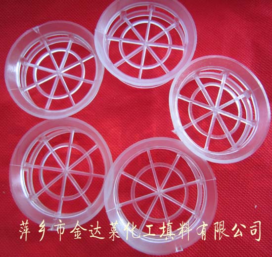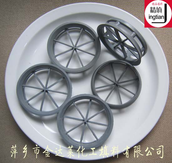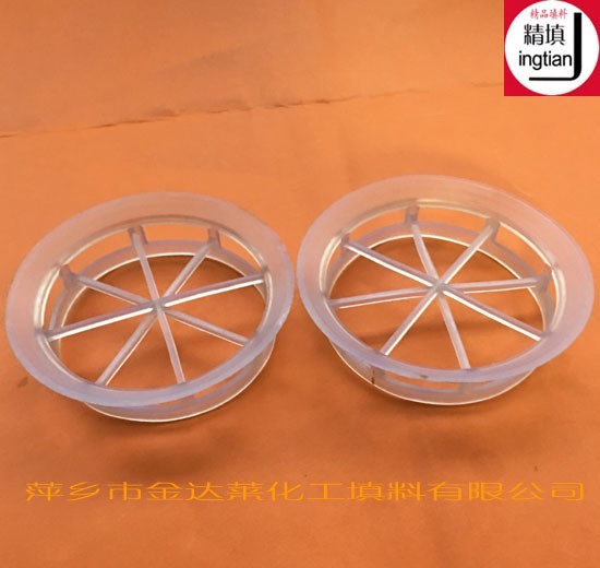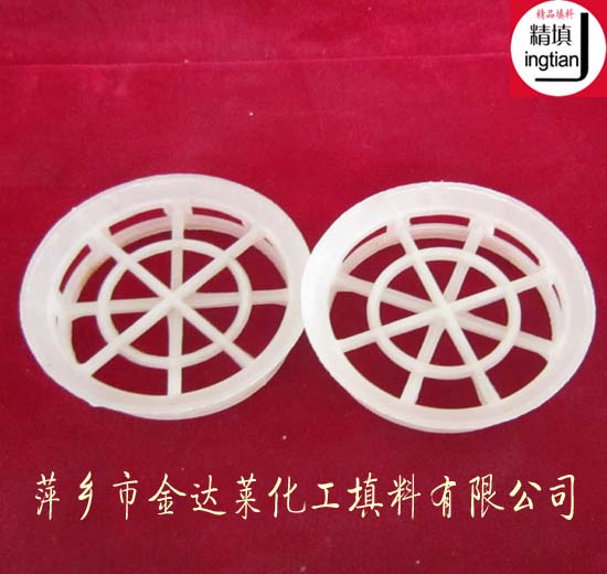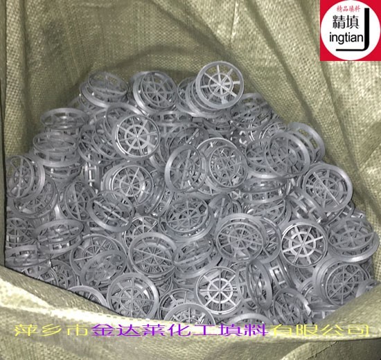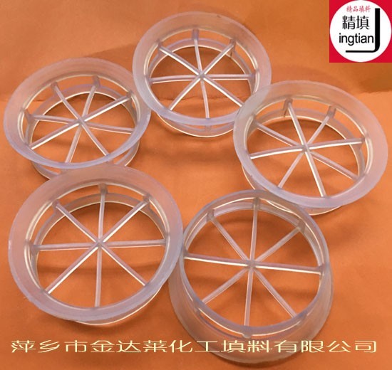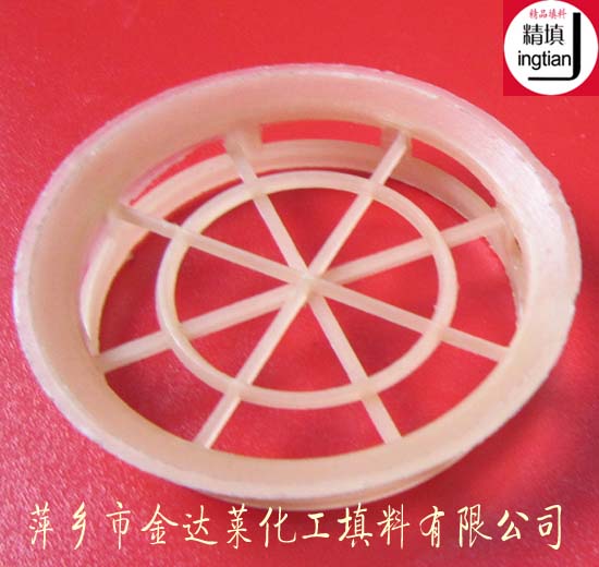 塑料短阶梯环填料又称阶梯短环,主要是将阶梯环填料原先的高径比1:2改为1:3,由于其高径经的进一步减小,使填料的内表面利用得更加充分。并在环的一端增加了锥型翻边,这样,不仅破坏了填料结构的轴对称,使其变成以点接触为主,而且这些接触点还可以成为液体沿填料表面流动汇聚分散点,可以促进液膜的表面更新,有利于填料传质效率提高。塑料短阶梯环填料具有重心低,在随机乱堆过程中具有一定程度规则排列的特点,因而阻力小、能量大,性能优良。同时短阶梯环填料将原先的一端翻边改为两边翻边,可增加填料安装后的空隙率,减少气体流动阻力,更有利于传质。同时由于其高径比的进一步减小,具有重心低,使填料的内表面利用得更加充分。产品在随机乱堆过程中具有一定程度规则排列的特点,因而阻力小、通量大。由于以上结构上的优化,使短阶梯环填料的压降较同样尺寸的阶梯环填料降低了29%~36%。这种结构促进了液膜的表面更新,有利于填料传质效率提高。