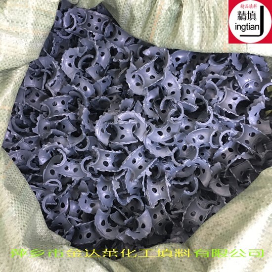 CPVC氯化聚氯乙烯异鞍环填料类似于马鞍形状,这种填料层中主要为弧形的液体通道,填料层内的空隙较环形填料(尤其相比于拉西环填料)更加连续,可使气体向*动时主要沿弧形通道流动。该产品外形结构是对塑料矩鞍环的改进,是将扇形弧面改进成带锯齿边缘的贝壳状弧面,并增加开孔使填料内外表面沟通、增加流体的自由通道,有利于液体分布和表面的更新,故较矩鞍环的处理能力高,压降小、传质性能有所改善。