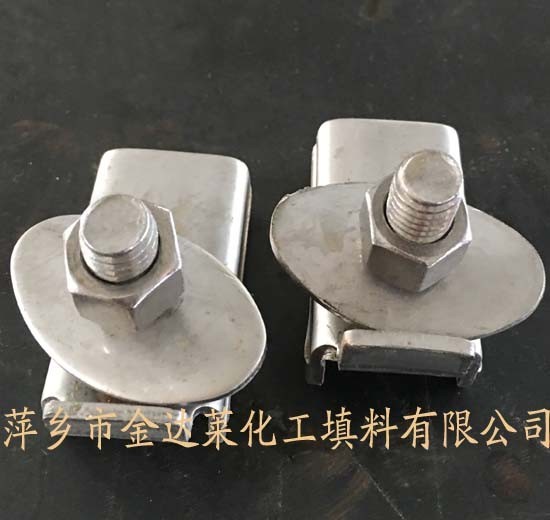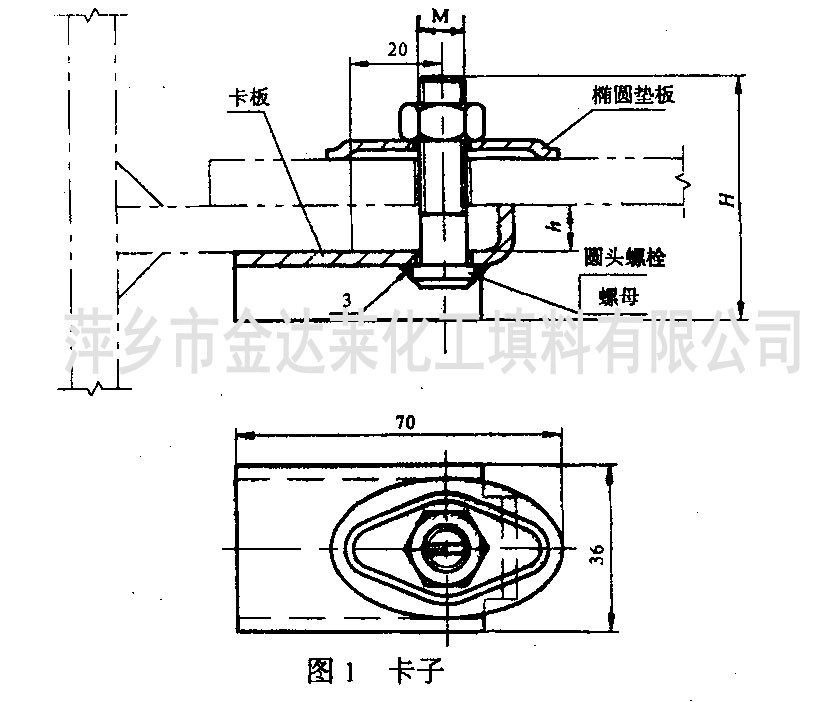 卡子由卡板、椭圆垫板、圆头螺栓和螺母组成,其结构、尺寸及材质等如上图。卡子是最常用的板式塔塔盘的固定件。根据jb/t 1119-1999标准生产。