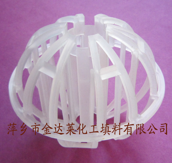 塑料双星球填料(环保球)应用于:原油减压蒸馏,高真空蒸馏,烯径分离,异构体分离,萃取蒸馏等。特性:低压降,通量大,效率高,高的弹性,填料层内流体再分布性能好.