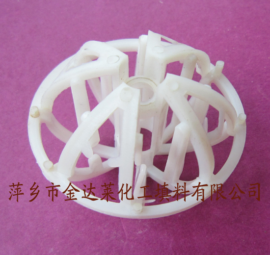 塑料双星球填料内多用于空气净化装置里面,所以又称环保过滤球,主要由塑料材料聚丙烯(PP)、聚氯乙烯(PVC)、氯化聚氯乙烯(CPVC)、增强聚丙烯(RPP)等制成。它是1978年由德国的R.A.Jaeger(现在的美国Jaeger Products Inc)研发的产品。哈凯登填料是由许多枝条的隔栅组成空心的球球形填料,这个结构有利于填料表面的润湿与液膜的更新,由于隔栅在塔内堆积的孔隙均匀,有利于气液的分布和减小气流通过床体的阻力,塑料双星球特别适合气体吸收、尾气净化等装置,并可在低的液体负荷下操作。