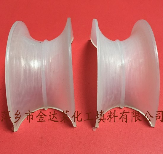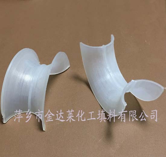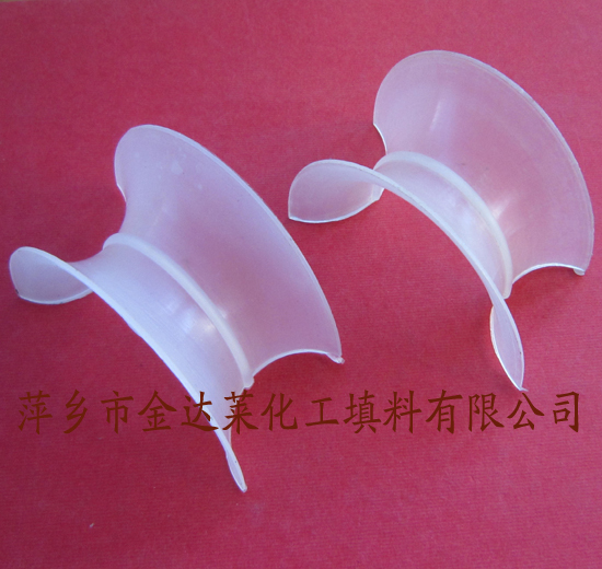 RPP增强聚丙烯矩鞍环填料矩鞍环是以贝尔弧环的改进,主要将一对弧形面改为矩形面,且内外曲率半径不同,从而避免了叠套的可能性;弧形侧面在填料床层内,增加了填料间接触的空隙,使之更有利于气体和液体在填料层中的流动和扩散其床层空隙率均匀,液体分布性能较好,具有压降低,传质效率高等特点。与贝尔弧鞍或拉西环相比,其通量大、压降低、效率高。